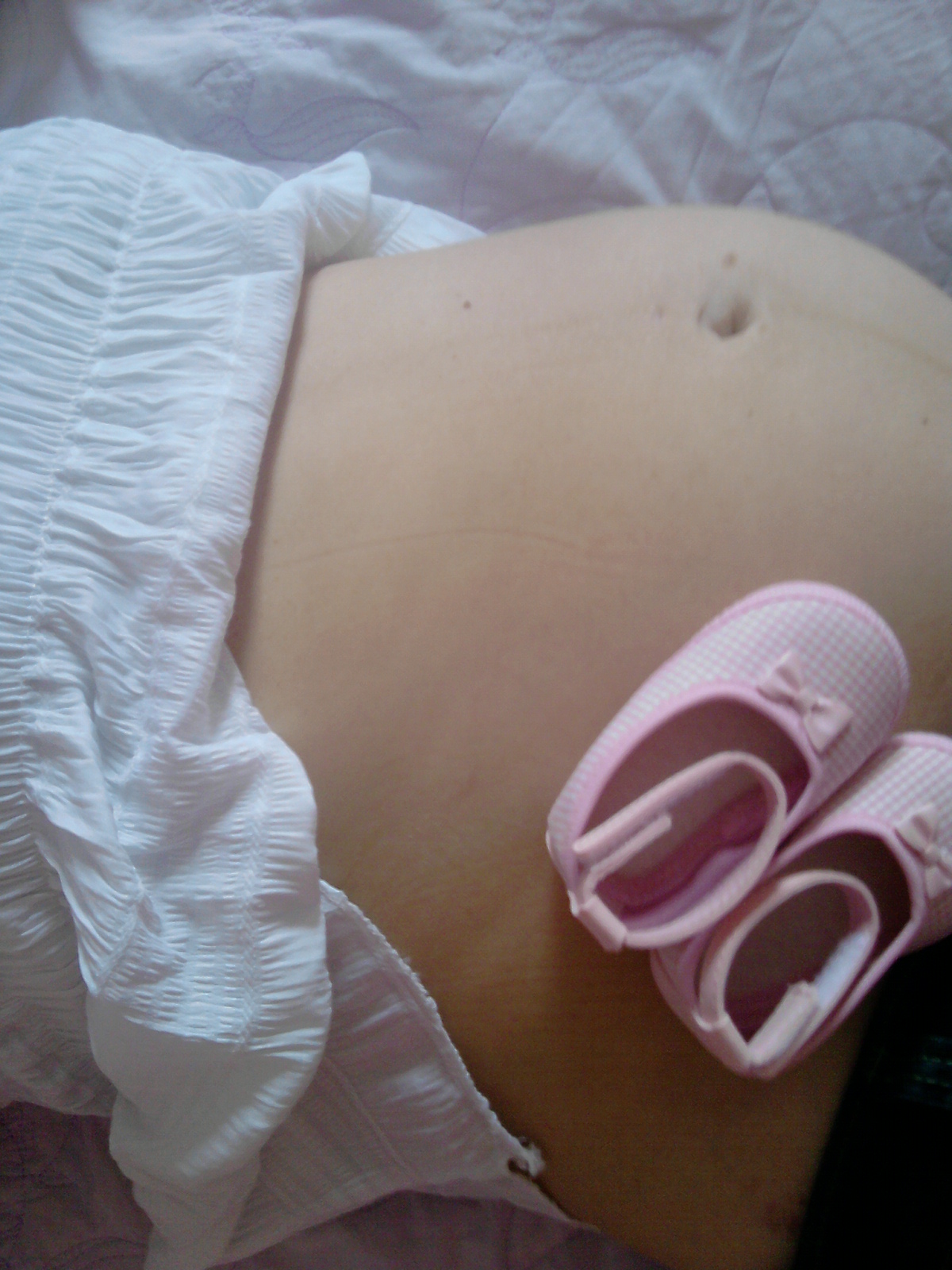 Sarinha tem mexido bastante e seus chutes estão ficando cada vez mais doloridos, acho que ela já está ficando apertadinha aqui dentro, pois sinto como ela tivesse a 1mm embaixo da minha pele.